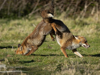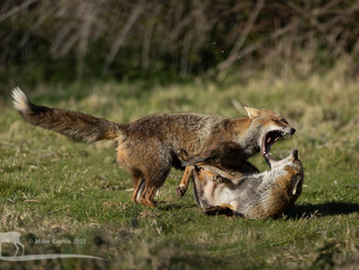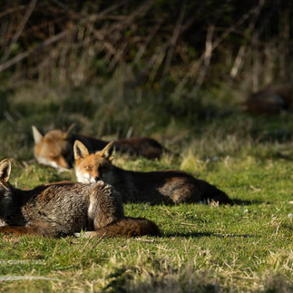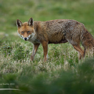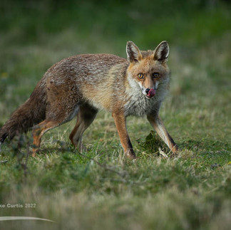 We also have a second lactating vixen who's recently turned up. We've been seeing her most days as she scuttles along the side of the building. She doesn't go into the field and does not appear to have a relationship with the territory holding family. I've not been able to get a photograph of her yet but she does look very similar to a vixen I used to see last year, who at one stage had a severe limp that she eventually recovered from. The adjacent photo was taken in 2021 of the so called 'Lame Vixen'. I hope it is her as she battled through a lot to survive last summer.